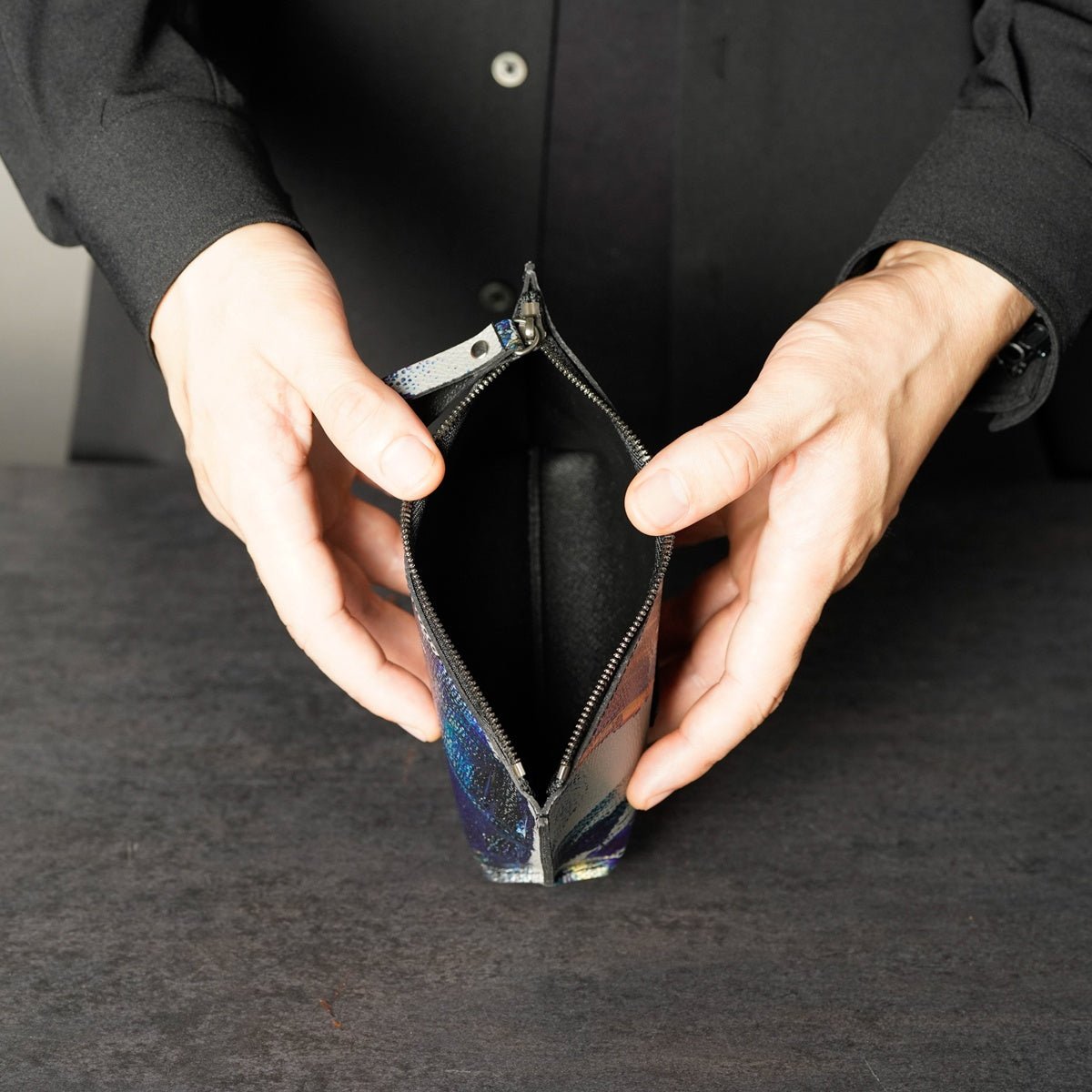 キャンバスとなる革の色や表情から読み取った雑踏やネオンのような風景を、その時の一瞬一瞬の心の機微と共に表現。