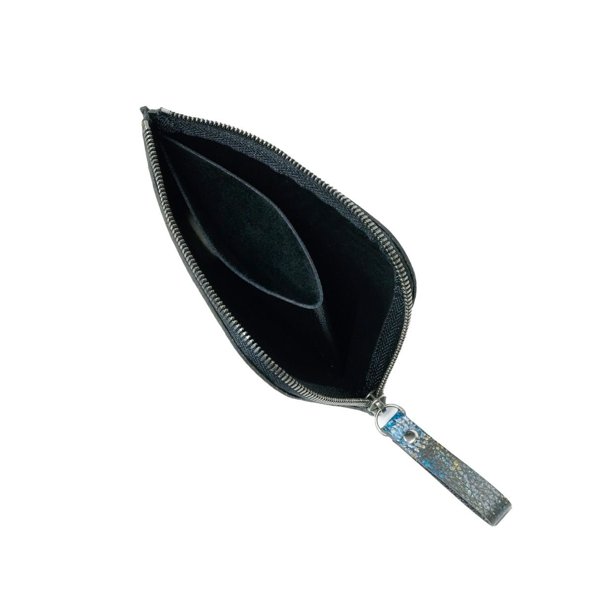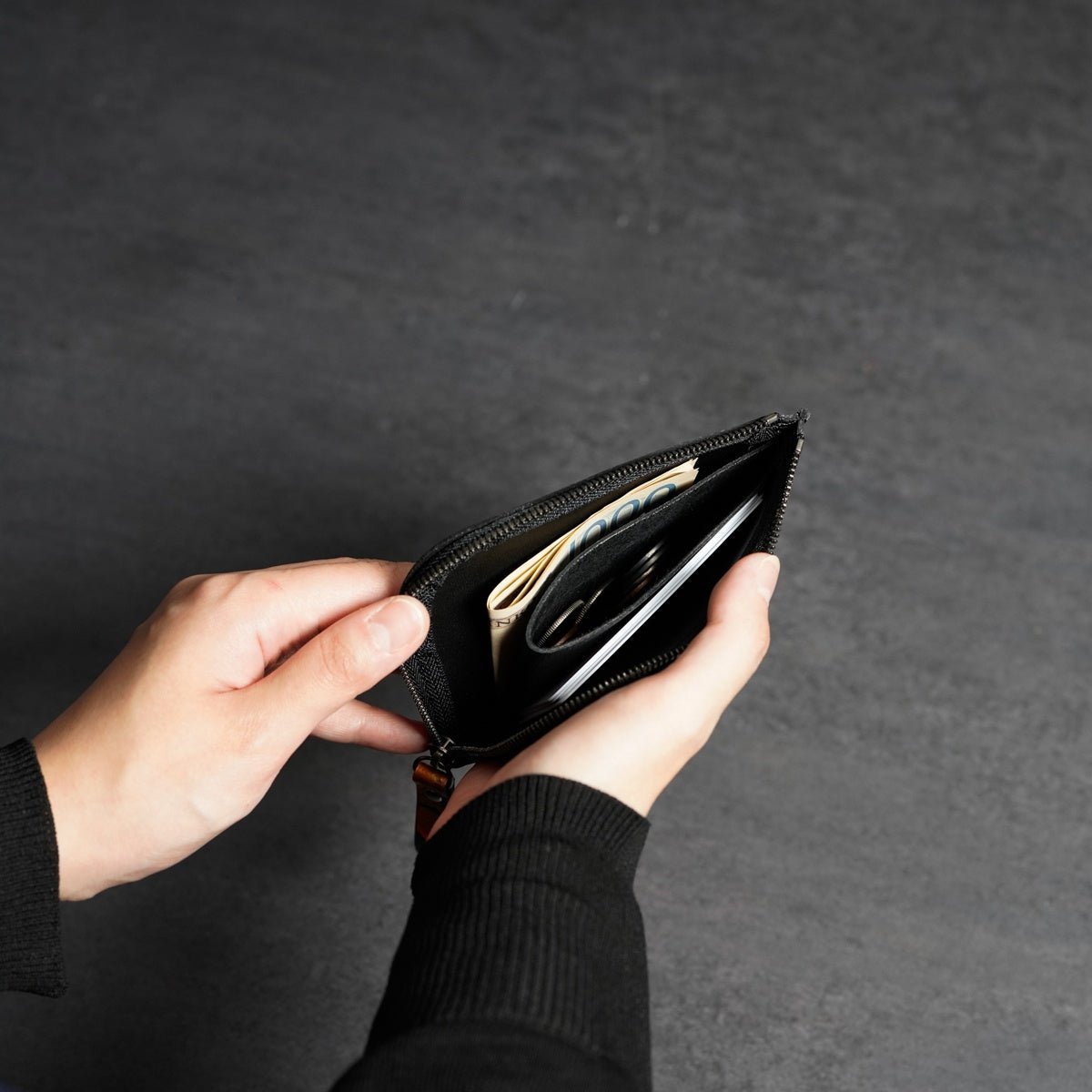L字ファスナーで大きく開き、必要なものを一目で確認できるスマートな札入れ。