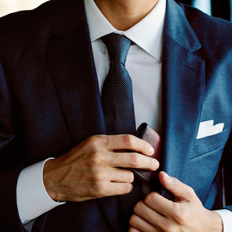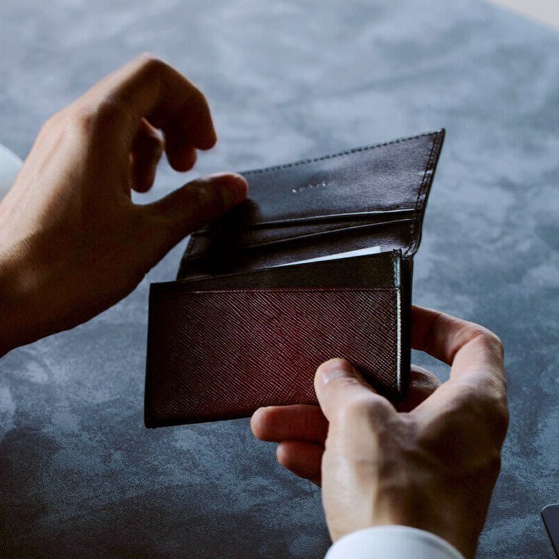 内装革に流れるような水シボ型押しを施した笹マチ付き名刺入れは、名刺25枚程度収納できます。収納枚数によって厚みを調節し、ジャケットの内ポケットでかさ張ることなく、あるゆるシーンで活躍します。