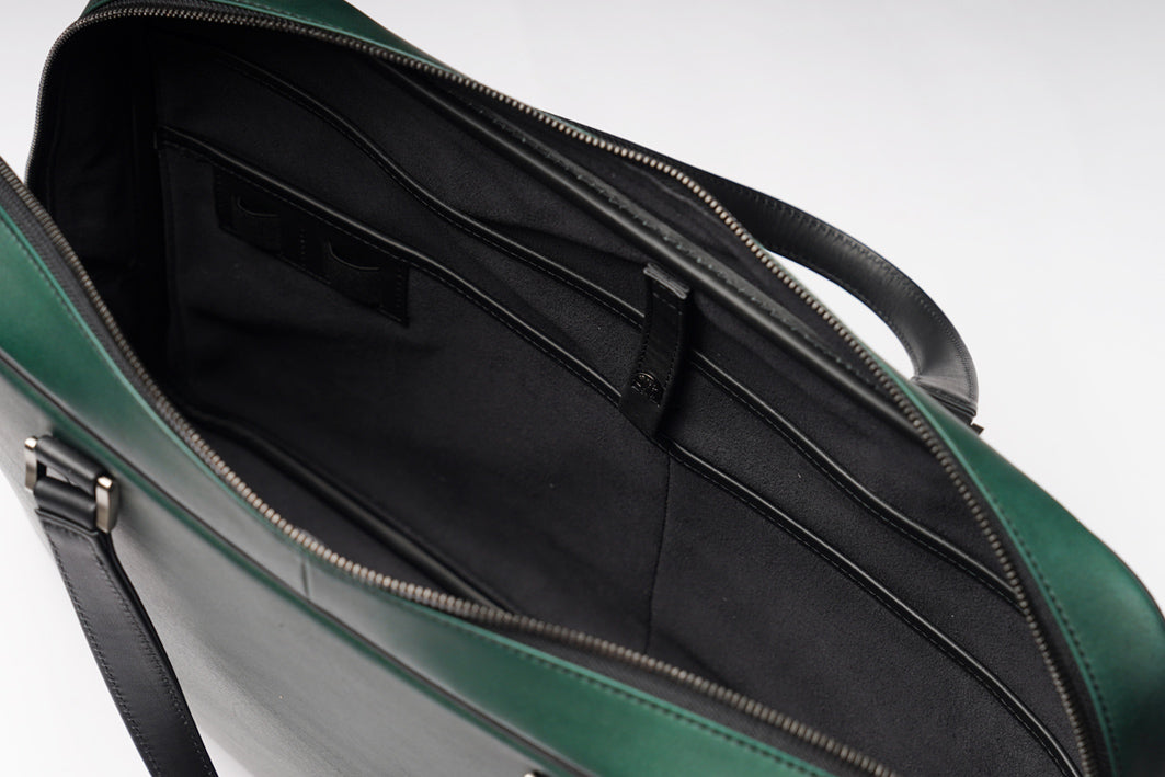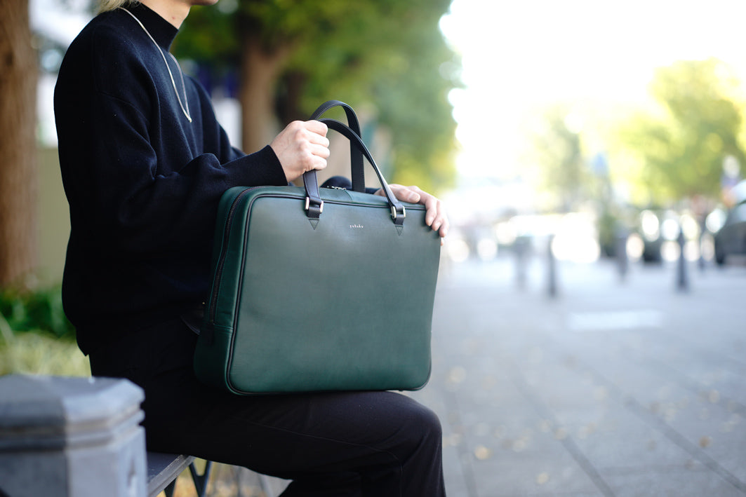 ハンドル部分はタンニンなめしによって仕上げられた牛革「オルテンシア」を採用。
