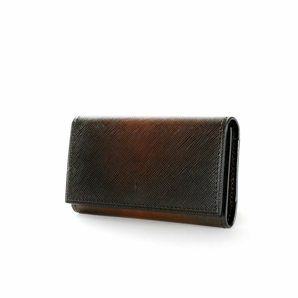 ベラトゥーラ技法で手染めしたカーフスキンに型押しを施すことにより、キズなどにも強く、乱反射による輝きが日常にさりげなく彩りを添えます。