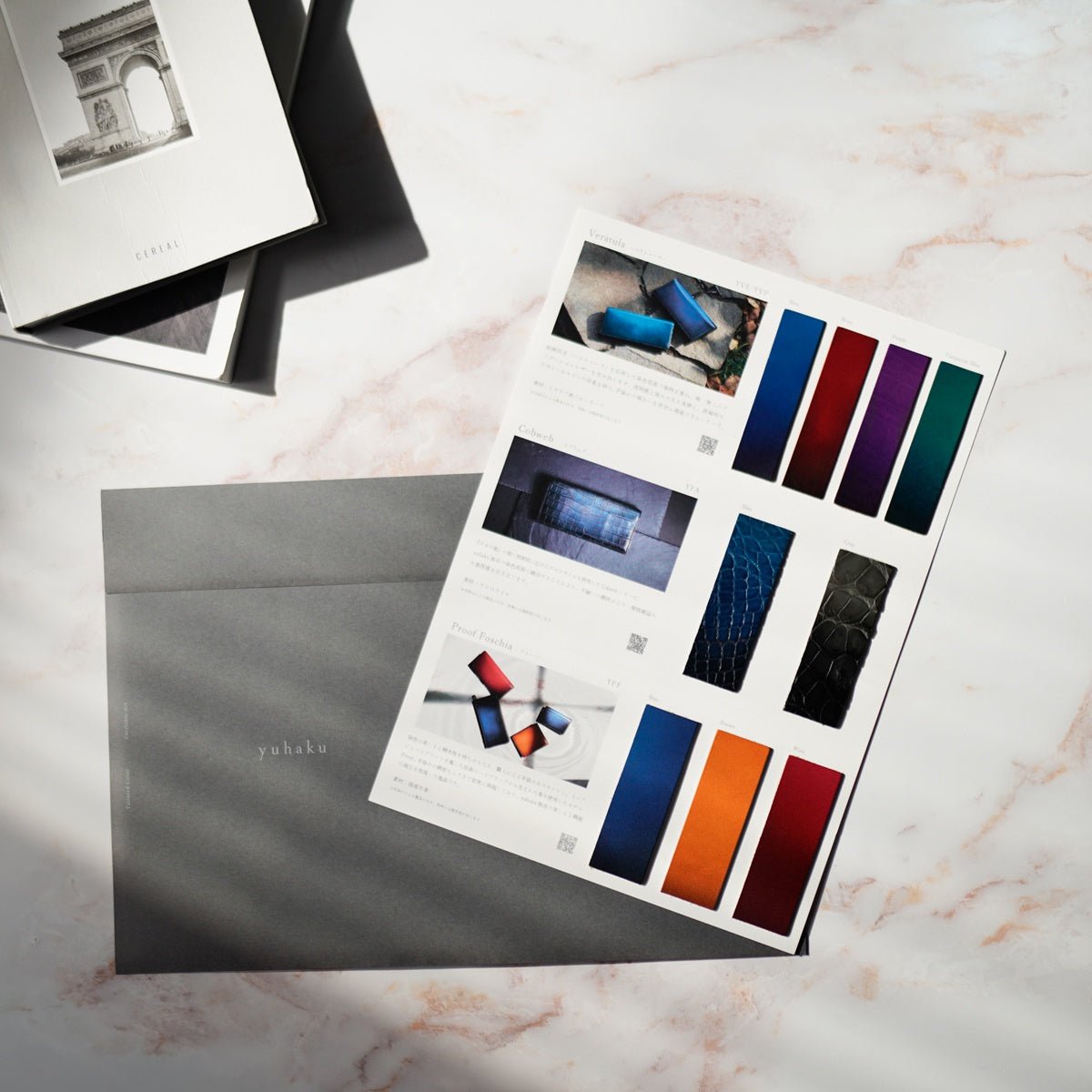 手染めによる独自の彩りを、実際に手に取って確かめていただける特別な革サンプルをご用意しました。