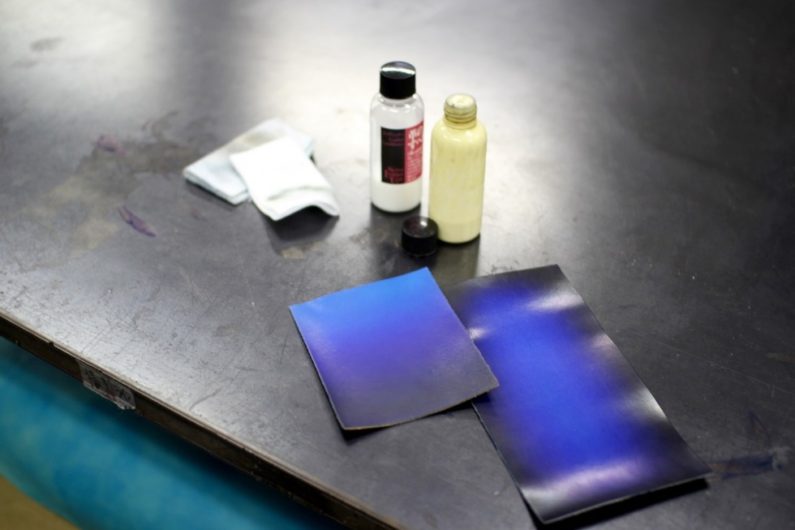 革製品の製作と共に革染色の研究に没頭。違う角度から革を知ることで、
