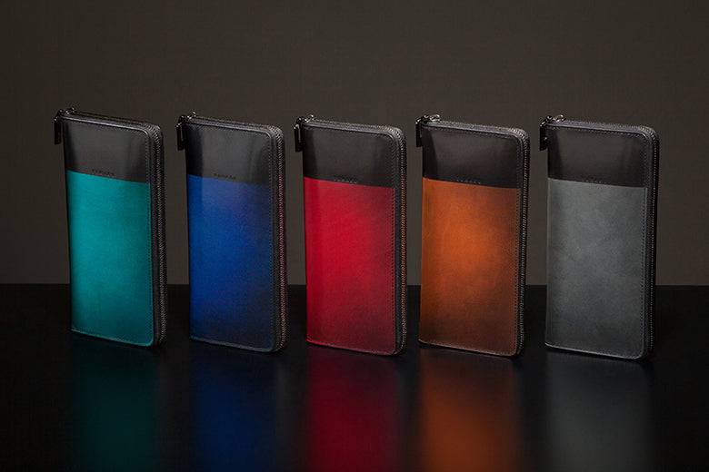 何色もの染料を使い、手染めで美しいグラデーションを作り出す「yuhaku」のレザー。このブランドのモノづくりは、世界でも唯一と言われる独創的な染色手法と細部にまで行き届いたこだわりに支えられている。