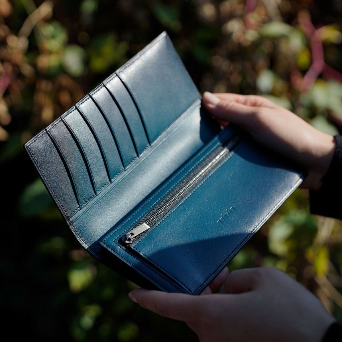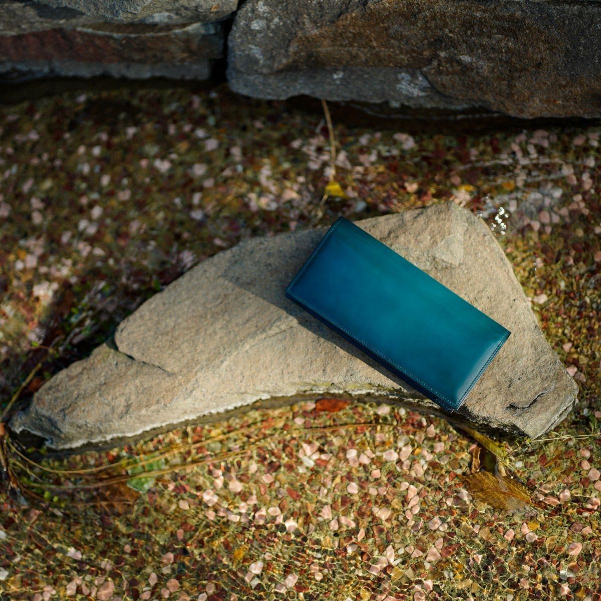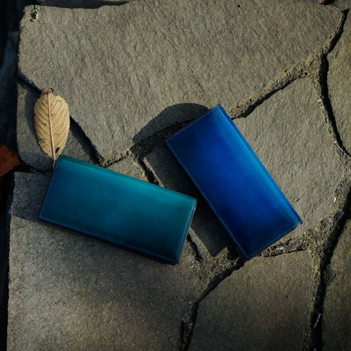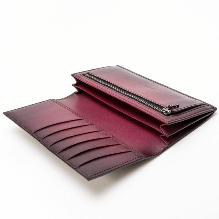 カーフの中でも特に、グレージングにより艶の出やすい革を選定することで、革の美しさと手染めの透明感が最大限に引き立ちます。
