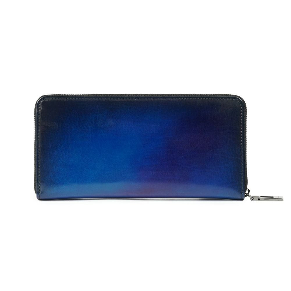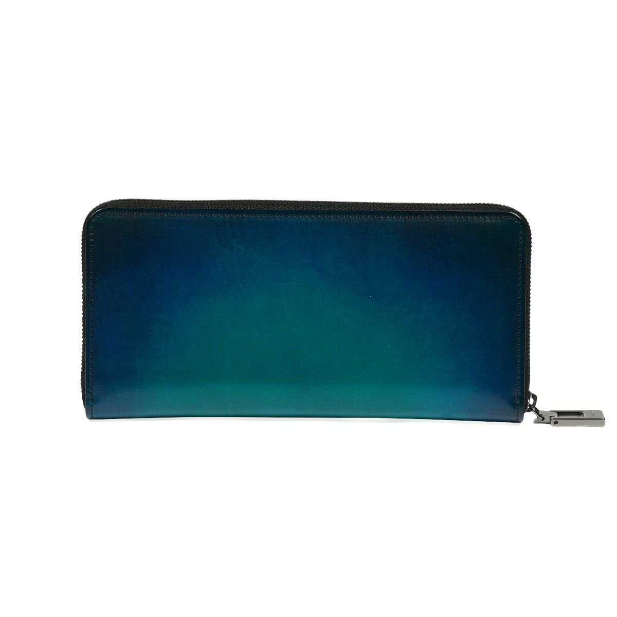 絵画技法「ベラトゥーラ」を応用した染色技術で染料を重ね、唯一無二のグラデーションレザーを生み出します。